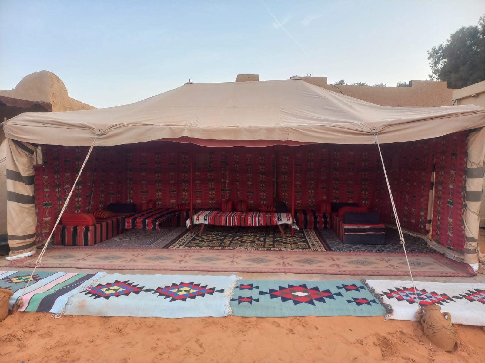 Restaurent + WC + Douche+ Tentes VIP avec lits séparés+ Buvette.